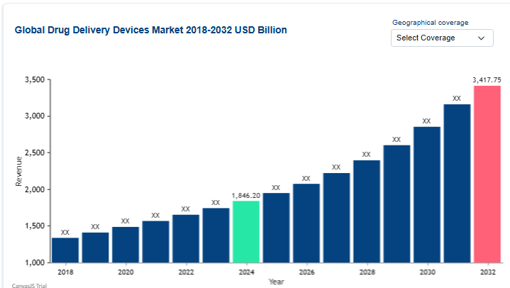 The healthcare sector is witnessing a paradigm shift toward personalized medicine and self-administration, which is driving a surge in specialized medical hardware. The Drug Delivery Devices Market was valued at USD 1,846.20 billion in 2024 and is projected to reach USD 3,417.75 billion by 2032, growing at a CAGR of 9.20% during the forecast period of 2025 to 2032. This growth is fueled by the rising prevalence of chronic diseases like diabetes and respiratory disorders, alongside a technological push toward "smart" devices that improve dosage accuracy and patient adherence.