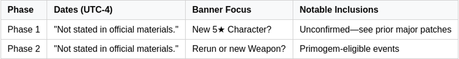 For your pre-update checklist: maintain condensed resin, claim all livestream codes promptly, and avoid over-farming current materials. Hold off on teambuilding commitments until new character kits are shown.