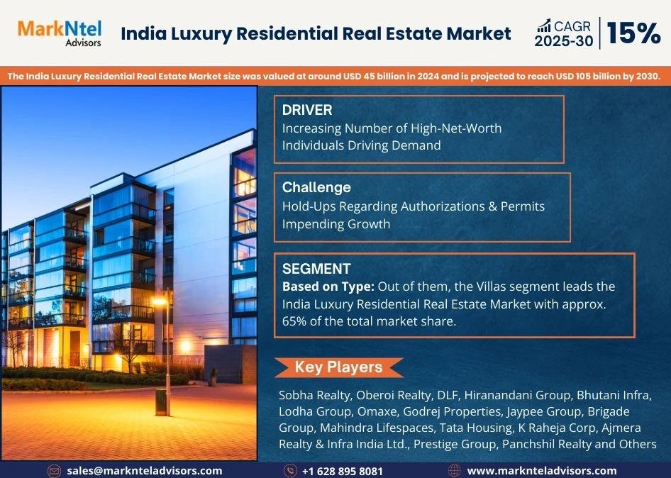 MarkNtel Advisors, a leading market research and consulting firm, has announced the release of its latest study titled India Luxury Residential Real Estate Market Research Report: Forecast (2025-2030). This report provides a detailed assessment of the India Luxury Residential Real Estate Market, covering its evolving dynamics, emerging trends, key growth drivers, major challenges, and competitive landscape.