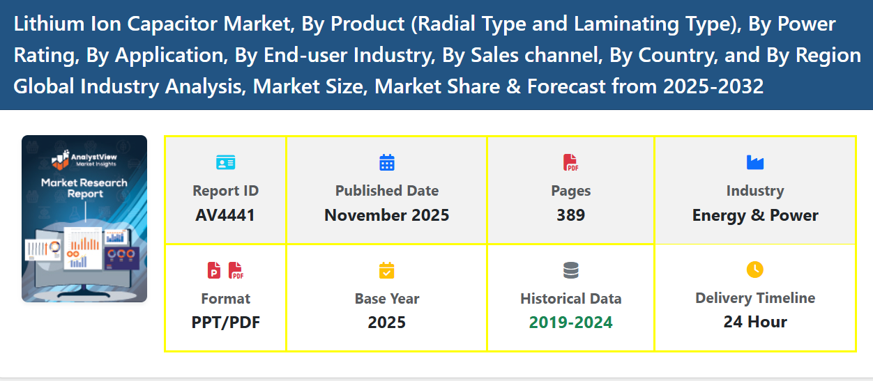 Key trends include the development of high-voltage LIC modules for transportation systems, rising adoption of hybrid energy-storage architectures combining LICs and batteries, and improving electrode materials to increase energy density. Miniaturization for IoT devices and the integration of LICs into power electronics for renewable energy are also shaping the market.
