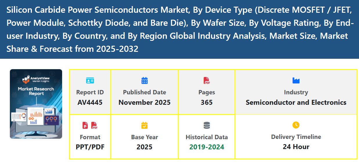 The Silicon Carbide (SiC) Power Semiconductors Market is expanding rapidly as industries shift toward high-efficiency, high-voltage, and compact power-conversion technologies. Silicon carbide, a wide-bandgap semiconductor material, delivers superior thermal conductivity, faster switching speeds, higher voltage tolerance, and greater efficiency compared to traditional silicon. These advantages make SiC devices essential for next-generation power electronics, particularly in electric vehicles (EVs), renewable-energy systems, industrial drives, aerospace, and high-performance power supplies.