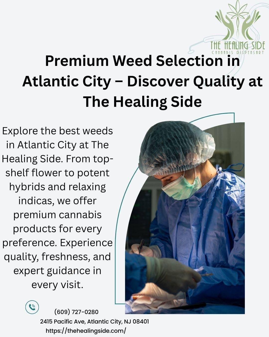 Explore the best weeds in Atlantic City at The Healing Side. From top-shelf flower to potent hybrids and relaxing indicas, we offer premium cannabis products for every preference. Experience quality, freshness, and expert guidance in every visit.