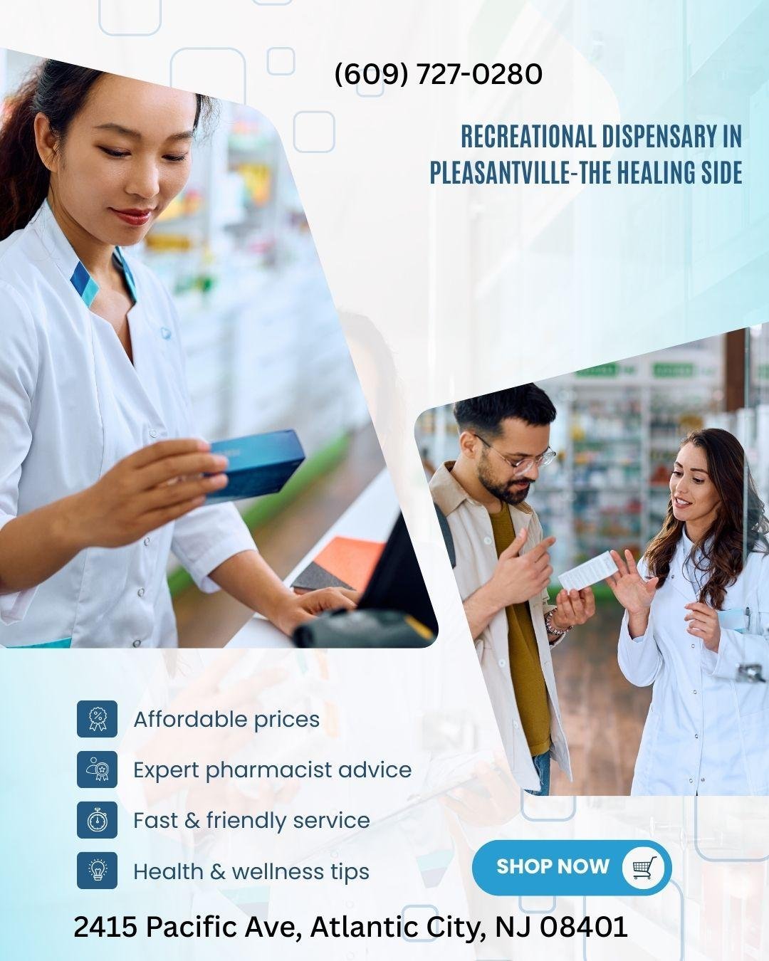 The Healing Side is a trusted recreational dispensary in Pleasantville, offering a carefully curated selection of premium cannabis products. Enjoy a welcoming atmosphere, knowledgeable staff, and high-quality options designed to elevate your wellness and recreational experience.